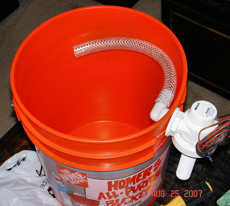 The place Perry's talkin about is the place we went to yesterday and we got the valve. Remember I mentioned Andy being one of the La Jolla superyakkers? Perry, It's now called OEX ,I believe. It's right across the lil sand beach from Sunset Rentals, Kenny's business! Andy sold his ice business and moved up here! He's still the Iceman! Hi mrJB, Tarpon Guy said"I built mine like Piranha's. Very simple. I really liked the way he eliminated the whole discharge assembly. I'm a big believer that less is better. following his lead, I just drilled a series of small holes in the bucket, in a horizontal row and let the water cascade down the back of the bucket and then out the yak scupper holes." Tarpon Guy is copying my tank drain design cause last Friday he saw it in action at Dana, It's crude, almost primitive, but simple and it works very well! The reason I went to the horizontal line of holes is the drain kept getting clogged up with scales when I used a drain tube with a screen. That never happens with these horizontal holes! There are about 15 of them at the exact level I want the water to reach. They're just smaller in diameter than a pinhead anchovy! Works sorta like the overflow on a bathtub! Tarpon Guy(Bob), we'll give it a shakedown test in a few days! Piranha ![]()