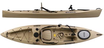Heritage Kayaks RedFish Angler 12 model. Specs are 12'3" Length, 30" Width, 65 lbs, Capacity 350 lbs. |